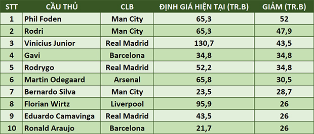 | Foden dẫn đầu top 10 cầu thủ sụt giá thảm nhất năm 2025 | ||