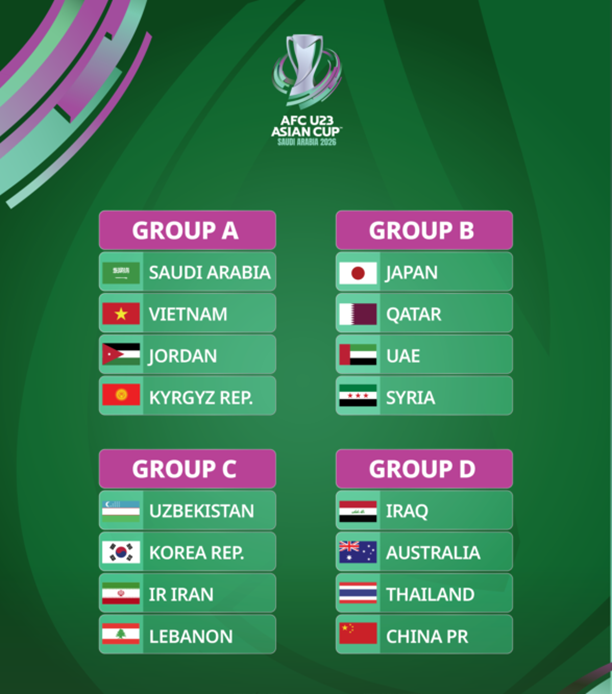 Lá thăm may mắn đã đưa Việt Nam vào bảng đấu khá nhẹ nhàng tại VCK U23 châu Á 2026 khi có sự góp mặt của Jordan, Kyrgyzstan và chủ nhà Saudi Arabia. |