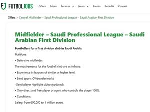 Saudi Pro League (giải VĐQG Saudi Arabia) bất ngờ đăng tin tuyển dụng vị trí tiền vệ phòng ngự lên 1 trang web việc làm. |