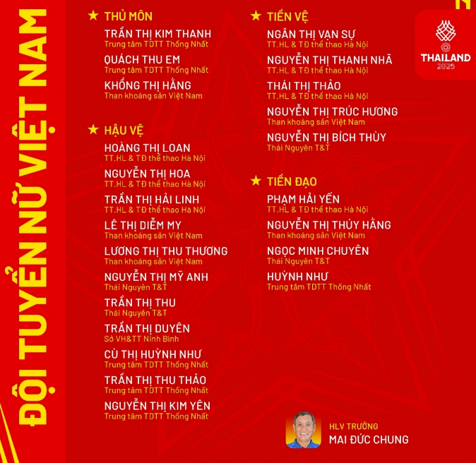 Với quyết tâm giành HCV SEA Games 33, HLV Mai Đức Chung đã triệu tập hầu hết những cầu thủ giỏi và kinh nghiệm nhất của bóng đá nữ nước nhà. |