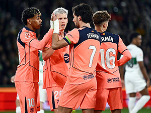 Tỏa sáng khi góp dấu giày vào cả 3 bàn thắng của Barcelona, Lamine Yamal đã đóng vai trò then chốt giúp đội bóng xứ Catalan đánh bại Elche, qua đó tạm thời nới rộng khoảng cách với Real Madrid trên BXH lên 4 điểm. |