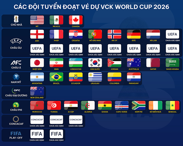 | CẬP NHẬT: Đã xác định 34/48 đội dự World Cup 2026 | ||