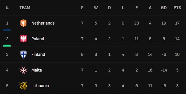 Chỉ cần không thua Lithuania, Hà Lan sẽ chính thức giành vé dự VCK World Cup 2026. Đây là nhiệm vụ không quá khó khăn với Cơn lốc màu da cam. |