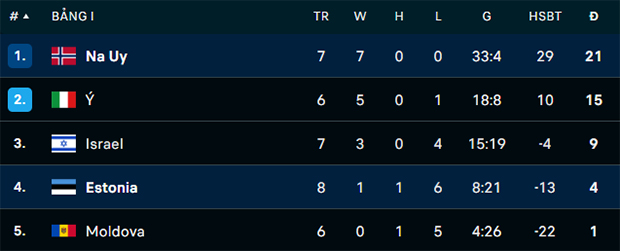 ![]() Na Uy coi như đã nắm chắc tấm vé tham dự VCK World Cup 2026 Rạng sáng nay, Na Uy đã bước vào trận đấu với Estonia thuộc lượt trận áp chót bảng I vòng loại World Cup 2026 khu vực châu Âu. Trước lượt trận này, đội bóng Bắc Âu dẫn đầu bảng I với 18 điểm trọn vẹn, hơn 3 điểm so với Italia. Na Uy cần chiến thắng để tiếp tục duy trì lợi thế trước màn đụng độ trực tiếp Italia ở lượt trận hạ màn. Haaland và các đồng đội đã không bỏ lỡ cơ hội khi gặp đối thủ yếu hơn về mọi mặt. Thực tế, Na Uy gặp khá nhiều khó khăn trong hiệp đấu thứ nhất. Họ tạo ra thế trận áp đảo với nhiều cơ hội nhưng không thể tận dụng. Nhưng ở hiệp 2 thì khác, đội bóng Bắc Âu đã tạo ra cơn mưa bàn thắng. Chỉ trong vòng 2 phút (từ phút 50 đến 52), tiền đạo Alexander Sorloth đã ghi liên tiếp 2 bàn thắng, giúp Na Uy vượt lên dẫn trước 2-0. Và sau đó, ở các phút 56 và 62, Erling Haaland đã ghi thêm 2 bàn thắng nữa. Sau đó, Estonia gỡ lại 1 bàn. Chung cuộc, Na Uy giành chiến thắng với tỉ số 4-1. Với cú đúp vào lưới Estonia, Erling Haaland đã nâng tổng số bàn thắng ở vòng loại World Cup 2026 lên con số 14. Đây chính là nguồn lực quan trọng, giúp Na Uy toàn thắng 7 lượt trận ở bảng I vòng loại World Cup 2026 khu vực châu Âu. ![]() Haaland đã nâng tổng số bàn thắng ở vòng loại World Cup 2026 lên con số 14 Đặc biệt, sau trận thắng Estonia, Na Uy coi như đã đoạt vé tham dự VCK World Cup 2026. Ngay cả khi để thua Italia ở lượt trận hạ màn, đội bóng Bắc Âu vẫn sáng cửa dẫn đầu bảng I nhờ hiệu số bàn thắng vượt trội. Với kịch bản này, Italia sẽ về đích thứ 2, phải tham dự vòng play-off để tranh vé vớt dự World Cup 2026. Đây sẽ là VCK World Cup đầu tiên của Na Uy kể từ năm 1998 và cũng là lần đầu tiên trong sự nghiệp Erling Haaland tham dự giải đấu lớn ở cấp độ ĐTQG. XẾP HẠNG BẢNG I VÒNG LOẠI WORLD CUP 2026 KHU VỰC CHÂU ÂU ![]() |