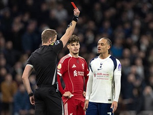 Tottenham đã gặp bất lợi lớn về quân số với 2 tấm thẻ đỏ của Xavi Simons và Cristian Romero, qua đó nhận thất bại 1-2 ngay trên sân nhà trước Liverpool. |