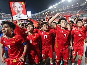 Sau gần 1 năm, bóng đá Việt Nam lại đăng quang tại sân Rajamangala cùng HLV Kim Sang-sik. Có thể hiểu cảm xúc vỡ òa của các cầu thủ U22 Việt Nam bởi họ đã giành chiến thắng nhờ bản lĩnh và tinh thần không bỏ cuộc. |