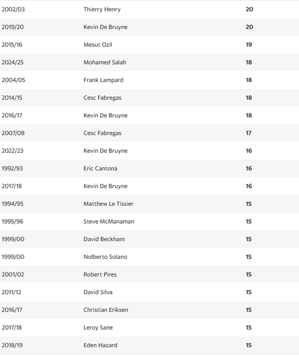 Nếu duy trì phong độ hiện tại, Bruno Fernandes hoàn toàn có thể cân bằng hoặc vượt qua thành tích kiến tạo tại Premier League của Thierry Henry và Kevin De Bruyne. |