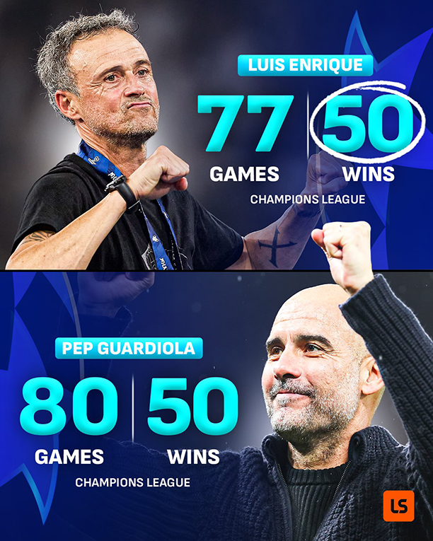 Vượt qua Pep Guardiola, Luis Enrique đã trở thành HLV chạm mốc 50 trận thắng tại Champions League nhanh nhất trong lịch sử. |