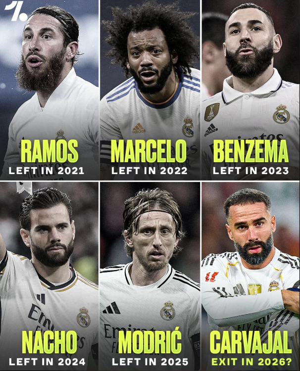 Kể từ 2021 đến nay, đều đặn cứ mỗi năm Real Madrid lại chia tay đội trưởng của CLB. Theo quy luật đó, Dani Carvajal sẽ là người tiếp theo phải rời Bernabeu. |