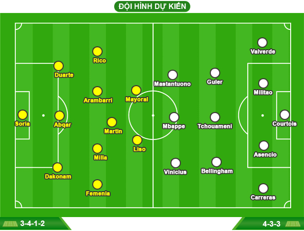 LỰC LƯỢNG - GETAFE: Vắng Jiri Letacek (chấn thương). - REAL MADRID: Vắng Carvajal, Ceballos, Alexander-Arnold, Mendy, Dean Huijsen và Rüdiger (chấn thương). PHONG ĐỘ VÀ ĐỐI ĐẦU - Getafe thắng 3, hòa 2, thua 3 trong 8 trận từ đầu mùa. - Real Madrid thắng 9, thua 1 trong 10 trận từ đầu mùa. - Getafe thắng 1, hòa 1, thua 8 trong 10 lần gặp Real Madrid gần nhất. ![]() Mbappe ghi 1 bàn vào lưới Getafe ở La Liga 2024-25 Mbappe đang có khởi đầu ấn tượng nhất trong sự nghiệp. Theo thống kê, sau 13 trận thi đấu cho Real Madrid và đội tuyển Pháp kể từ đầu mùa giải 2025-26, cựu tiền đạo PSG đã ghi 17 bàn và có 4 pha kiến tạo. Cũng theo thống kê, Mbappe đã chọc thủng lưới 12/13 đối thủ mà anh đối đầu từ đầu mùa. Mallorca là đội bóng duy nhất ngăn cản được thủ quân đội tuyển Pháp ghi bàn kể từ đầu mùa giải. Ấn tượng hơn, Mbappe đã ghi bàn trong tất cả các trận đấu mà anh ra sân kể từ đầu tháng 9 đến nay. Có thể thấy, việc ngăn cản Mbappe ghi bàn đang là bài toán chưa có lời giải, 1 nhiệm vụ rất khó khăn với bất kỳ đối thủ nào, trong đó có cả Getafe ở vòng 9 La Liga diễn ra vào rạng sáng mai. Trước trận derby Madrid, Mbappe đã tái phát chấn thương mắt cá trong trận Pháp thắng Azerbaijan 3-0 tại vòng loại World Cup 2026, trận đấu mà anh ghi 1 bàn và kiến tạo 1 lần. Do đó, tiền đạo 26 tuổi buộc phải trở lại Real Madrid và không tham dự trận Pháp hòa Iceland 2-2 sau đó. Sau 1 tuần được điều trị tích cực và bình phục chấn thương mắt cá, Mbappe đã trở lại tập luyện bình thường. Nhờ đó, tuyển thủ Pháp sẵn sàng cho trận derby Madrid không cân sức trên sân Coliseum Alfonso Pérez. ![]() Real đã trở lại đường ray chiến thắng sau thua tan nát trước Atletico Lý do gọi đây là derby không cân sức là bởi Real luôn áp đảo Getafe trong lịch sử đối đầu. Riêng 40 lần chạm trán gần nhất, Los Blancos đã thắng tới 30 trận trước đối thủ cùng thành phố. Đáng lo ngại cho Getafe là họ đang tiếp đón Real Madrid trong bối cảnh phong độ không tốt. Cụ thể, trong 4 vòng đấu gần nhất, đội bóng của HLV Jose Bordalas chỉ biết hòa (2 trận) và thua (2 trận), mới nhất là thất bại 1-2 trước Osasuna ở vòng 8. Một trong những nguyên nhân khiến Getafe không thắng trong 4 vòng gần đây là do cả hàng công lẫn hàng thủ đều thi đấu thiếu hiệu quả. Bằng chứng là họ chỉ ghi được 3 bàn, để thủng lưới 7 lần và không giữ sạch lưới ở bất kỳ trận nào trong chuỗi 4 trận này. Có thể thấy, điểm mạnh nhất trong lối chơi phòng ngự phản công của Getafe dưới thời Jose Bordalas, khả năng phòng thủ, đang bộc lộ nhiều bất ổn. Đây có thể là "tử huyệt" của Azulones khi phải đối đầu với Real Madrid, đội bóng đã ghi 19 bàn (nhiều thứ 2 La Liga 2025-26, chỉ sau Barca với 22 bàn), và Mbappe, tiền đạo đang thuộc nhóm ghi bàn nhiều nhất tại 5 giải VĐQG hàng đầu châu Âu mùa này, cùng với Harry Kane và Erling Haaland. ![]() Đội bóng của Jose Bordalas không biết mùi chiến thắng gần 1 tháng qua Thử thách càng trở nên khó khăn hơn với Getafe khi họ tiếp đón Real Madrid đúng vào thời điểm Los Blancos đã lấy lại phong độ và tinh thần sau thất bại 2-5 trước Atletico Madrid ở vòng 7 La Liga. Kể từ sau trận thua đó, đoàn quân của HLV Xabi Alonso đã trở lại mạnh mẽ với 2 chiến thắng liên tiếp trước Kairat và Villarreal, ghi 8 bàn và chỉ để thủng lưới 1 lần. Sự trở lại mạnh mẽ này, cộng thêm cú sảy chân của Barcelona (thua Sevilla 1-4 ở vòng 8), đã giúp Real tạm thời giành lại ngôi đầu bảng. Tuy nhiên, trước thềm trận derby Madrid, Real lại để mất vị trí số 1 vào tay đại kình địch Barca, đội đã tạm chiếm ngôi đầu sau chiến thắng trước Girona ở vòng 9 đêm qua. Vì vậy, Real cần phải đánh bại Getafe để đòi lại ngôi đầu, đồng thời tạo đà tâm lý thuận lợi cho hai trận đại chiến sắp tới: tiếp đón Juventus (lượt trận thứ 3 vòng xếp hạng Champions League ngày 23/10) và gặp Barcelona ở vòng 10 La Liga vào ngày 26/10. DỰ ĐOÁN: Real Madrid thắng 2-1 ![]() KẾT QUẢ VÀ LỊCH THI ĐẤU