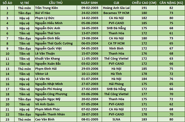 ![]() Thủ thành Trung Kiên là cầu thủ cao nhất của U23 Việt Nam Hôm nay (4/1), trên trang chủ, LĐBĐ châu Á (AFC) đã công bố danh sách tham dự VCK U23 châu Á 2026 của 16 đội tuyển. Các cầu thủ tham dự giải đấu đều được ghi rõ thông tin chi tiết về số áo, ngày tháng năm sinh, chiều cao và cân nặng. Dù dính chấn thương trong quá trình tập huấn chuẩn bị nhưng Thanh Nhàn vẫn có tên trong danh sách đăng kí dự VCK U23 châu Á của U23 Việt Nam. HLV Kim Sang-sik chỉ điều chỉnh 1 vị trí khi thay thế thủ thành Nguyễn Tân bằng Phạm Đình Hải. Lứa U23 Việt Nam hiện tại được đánh khá cao về thể chất, đặc biệt là chiều cao. Cầu thủ sở hữu chiều cao nhất ấn tượng nhất của U23 Việt Nam là thủ thành Trần Trung Kiên (1,91m). Ngoài ra, nhiều cầu thủ khác cũng sở hữu chiều cao từ 1,80m trở lên như Vĩ Hào (1,80m), Lý Đức (1,82m), Hiểu Minh (1,85m), Đình Bắc (1,80m), Đình Hải (1,85m), Văn Hà (1,84m) hay Văn Bình (1,83m). Tuy vậy, chiều cao trung bình của U23 Việt Nam dự giải U23 châu Á 2026 chỉ là 1,7648. Xét cả giải đấu, đoàn quân của HLV Kim Sang-sik chỉ hơn U23 Thái Lan (1,7622m) về chiều cao trung bình. Đội bóng sở hữu chiều cao ấn tượng nhất ở VCK U23 châu Á 2026 là U23 Iran (1,8296m). Đứng sau lần lượt là Trung Quốc (1,8196m), Australia (1,8091m), Jordan (1,8078m) và Nhật Bản (1,807m). Dù sở hữu chiều cao không quá ấn tượng ở VCK U23 châu Á 2026 nhưng U23 Việt Nam lại được đánh giá cao về kinh nghiệm với tuổi trung bình là 22,22. Đây là tuổi trung bình cao thứ 2 ở giải đấu, chỉ sau U23 Lebanon (22,52 tuổi). Ở chiều ngược lại, U23 Uzbekistan (20,52 tuổi) và U23 Nhật Bản (20,43 tuổi) là 2 đội sở hữu đội hình trẻ nhất giải đấu. Đây là lứa cầu thủ mà Uzbekistan và Nhật Bản xây dựng cho Olympic 2028. DANH SÁCH THAM DỰ VCK U23 CHÂU Á 2026 CỦA U23 VIỆT NAM ![]() |