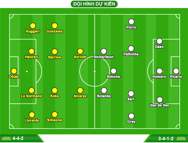 LỰC LƯỢNG - ATLETICO MADRID: Vắng duy nhất Rodrigo Mendoza do chấn thương - TOTTENHAM: Vắng Destiny Udogie, Wilson Odobert, James Maddison, Dejan Kulusevski, Ben Davies, Lucas Bergvall, Mohammed Kudus và Rodrigo Bentancur; khả năng ra sân của Radu Dragusin chưa chắc chắn PHONG ĐỘ VÀ ĐỐI ĐẦU - Atletico Madrid thắng 4, hòa 1 và thua 1 ở 6 trận gần nhất trên các đấu trường - Tottenham thua 5/6 trận gần nhất ở Premier League - Atletico Madrid thắng trận duy nhất gặp Tottenham vào năm 2016 ![]() Không được vào thẳng vòng 1/8 Champions League như Tottenham, Atletico Madrid phải đá thêm vòng play-off để tranh vé vớt. Ở vòng play-off, đoàn quân của Diego Simeone đã tận dụng tốt lợi thế sân nhà để giành chiến thắng chung cuộc 7-4 trước Club Brugge sau 2 lượt trận. Lá thăm may rủi đã đưa đẩy Atletico Madrid gặp Tottenham và đây cũng là lần đầu tiên 2 đội gặp nhau ở giải đấu chính thức. Trong quá khứ, họ cũng mới chỉ gặp nhau 1 lần tại giải đấu giao hữu năm 2016. Xét về danh tiếng và đẳng cấp, 2 đội được đánh giá ngang nhau. Nhưng với Atletico Madrid, Tottenham là lá thăm may mắn dành cho họ. Bởi lẽ, ở thời điểm này, Rojiblancos đang chiếm mọi ưu thế trước đại diện của bóng đá Anh. Ở trận lượt đi, đội bóng thành Madrid có cả thiên thời, địa lợi và nhân hòa. Đây là thời cơ không thể tốt hơn cho Atletico Madrid vì họ đang có phong độ tốt, còn đối thủ đang chìm trong khủng hoảng. Rojiblancos đã thắng 4/5 trận gần nhất trên các đấu trường, bao gồm chiến thắng kịch tính trước Real Sociedad cách đây 2 ngày. Được chơi trên sân nhà là một lợi thế rất lớn với Atletico Madrid. Họ đang sở hữu chuỗi 4 trận thắng liên tiếp tại Metropolitano, bao gồm màn hủy diệt Barca 4-0 tại lượt đi bán kết Copa del Rey. Tính xa hơn, thầy trò Simeone đã thắng 17/20 trận gần nhất tại tổ ấm của mình. ![]() Cũng vì tận dụng rất tốt lợi thế sân nhà nên Atletico Madrid đã vượt qua Club Brugge ở vòng play-off Champions League và đánh bại Barca để giành quyền vào chung kết Copa del Rey. Trong khi đó, Tottenham dù thay tướng nhưng vận chưa đổi. Giành tấm vé vào thẳng vòng 1/8 Champions League là thành tựu lớn nhất của Tottenham mùa này, còn lại tất cả là sự thất vọng. Họ thi đấu cực kì bết bát ở Premier League, chưa thắng trận nào kể từ năm 2026 và chỉ hơn nhóm ‘cầm đèn đỏ’ 1 điểm. Đội bóng Bắc London cũng sớm dừng bước ở 2 đấu trường cúp quốc nội là FA Cup và Carabao Cup. Giữa tháng 2, Tottenham sa thải Thomas Frank và bổ nhiệm Igor Tudor đến hết mùa giải. Nhưng chưa đầy 1 tháng, HLV người Croatia đang đứng trước nguy cơ bị ‘trảm’ vì toàn thua 3 trận Premier League liên tiếp, khiến Spurs càng sa lầy khủng hoảng. Tottenham đến thời điểm này có lẽ đã nhận ra sai lầm khi lựa chọn Tudor cho nhiệm vụ ‘chữa cháy’. HLV người Croatia vốn rất ít kinh nghiệm ở sân chơi đỉnh cao và cũng không có kinh nghiệm đua trụ hạng. Trước khi đến Spurs, Tudor bị Juventus sa thải vào cuối tháng 10 năm ngoái. Ông chỉ tại vị ở Turin 7 tháng. Về lực lượng, Atletico Madrid cũng ‘ăn đứt’ Tottenham. Đội chủ nhà chỉ vắng mặt duy nhất tân binh Rodrigo Mendoza, trong khi hàng loạt trụ cột của Spurs vẫn đang làm bạn với giường bệnh, như Destiny Udogie, James Maddison, Dejan Kulusevski, Mohammed Kudus và Rodrigo Bentancur. ![]() Một yếu tố đặc biệt quan trọng khác là sự đoàn kết của Atletico cũng hơn hẳn Tottenham. Các cầu thủ Atletico luôn chiến đấu hết mình vì Diego Simeone, một HLV biết truyền lửa. Ngay cả Antoine Griezmann, cầu thủ đã qua đỉnh cao nhưng vẫn thường xuyên tỏa sáng khi được tung vào sân từ ghế dự bị. Ngược lại, theo truyền thông Anh, nhiều cầu thủ Tottenham không hài lòng với phương pháp huấn luyện và phong cách chơi bóng của Tudor. Điển hình là việc hậu vệ Van de Ven đã phớt lờ chỉ đạo của HLV người Croatia ở trận derby Bắc London với Arsenal. Với một đội bóng đang mất phương hướng như Tottenham, sẽ không bất ngờ nếu họ thua đậm ở Metropolitano. Atletico Madrid có lẽ sẽ trừng phạt Spurs như cái cách mà họ đã làm với Barca ở vòng bán kết Cúp Nhà vua. DỰ ĐOÁN: Atletico Madrid thắng 4-0 ![]() LỊCH THI ĐẤU LƯỢT ĐI VÒNG 1/8 CHAMPIONS LEAGUE