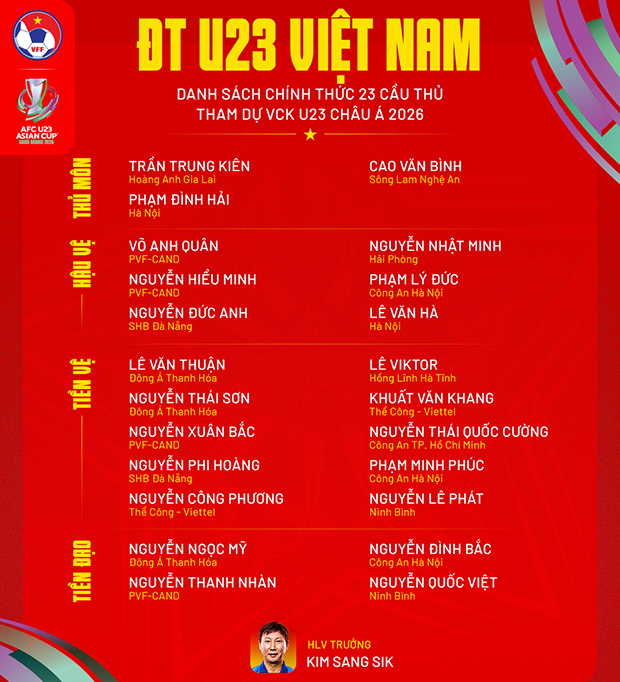 Mặc dù xuất hiện trong danh sách đăng kí của U23 Việt Nam nhưng tiền đạo Bùi Vĩ Hào không thể tham dự VCK U23 châu Á 2026 vì chấn thương. |