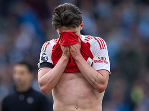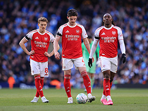 Sau trận thua Bournemouth, Arsenal tiếp tục gây thất vọng ở Premier League khi để thua đối thủ cạnh tranh trực tiếp là Man City. Thất bại ở Etihad đã khiến thầy trò Mikel Arteta đánh mất hoàn toàn lợi thế trong cuộc đua vô địch. Họ có thể rơi vào bi kịch ở giai đoạn cuối mùa. |