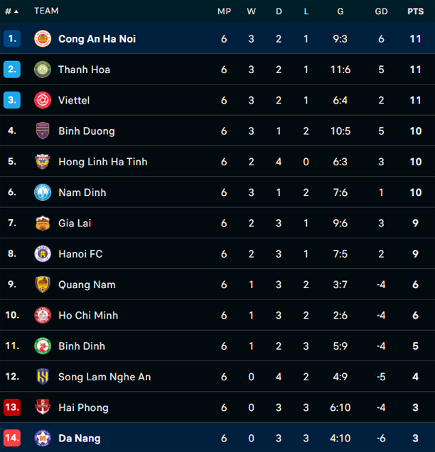 Dù vậy, tỉ số 3-0 đã là quá đủ để CA Hà Nội giành 3 điểm ở trận đấu này. Nhờ chiến thắng này, thầy trò Mano Polking đã vươn lên dẫn đầu BXH V-League sau vòng 6. Đội bóng ngành công an cùng giành 11 điểm như Thanh Hóa và Viettel nhưng xếp trên nhờ hơn hiệu số bàn thắng/bại.