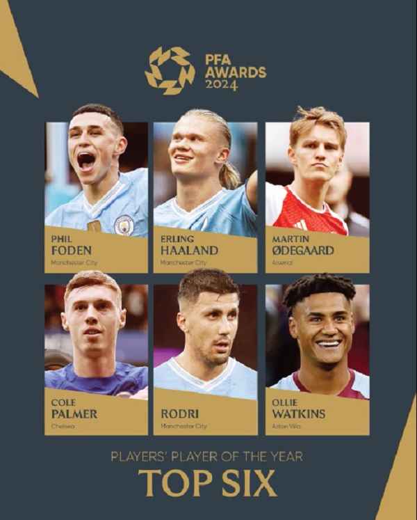 Giải Cầu thủ xuất sắc nhất năm 2024 của PFA sẽ vô cùng khó đoán với sự góp mặt của những tên tuổi như Cole Palmer, Erling Haaland hay Rodri. |