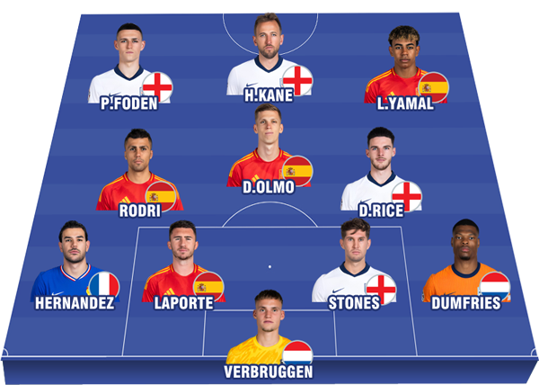 Đội hình xuất sắc nhất bán kết EURO 2024 |
