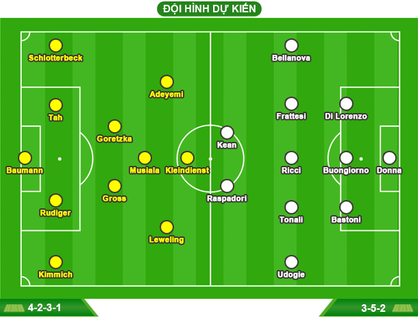 Không phải ngẫu nhiên mà Italia chơi tốt hơn trên sân khách. Công thức 3-5-2 mà HLV Spalletti áp dụng kể từ sau VCK EURO 2024 thực tế rất phù hợp với lối chơi rình rập. Đành rằng Italia cần chiến thắng ở Signal Iduna Park nhưng sự nhún mình lại là cơ sở để họ bùng nổ.