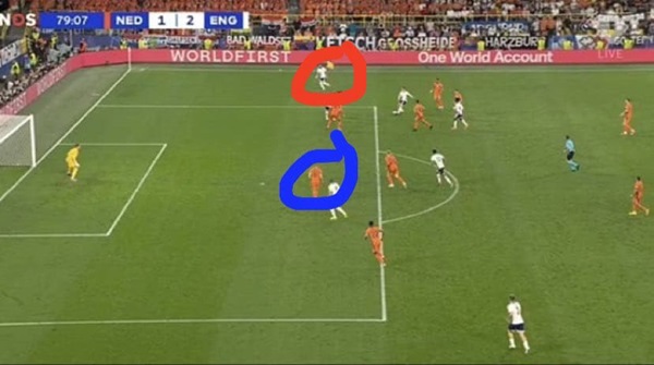Đáng chú ý, trận đấu giữa Anh và Hà Lan xuất hiện không ít những tình huống gây tranh cãi. Phút 79, khi tỉ số là 1-1, Kyle Walker căng ngang vào trong cho Bukayo Saka dứt điểm cận thành tung lưới thủ thành Bart Verbruggen nhưng bàn thắng không được công nhận vì Walker đã rơi vào thế việt vị.