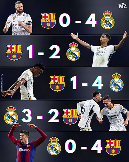 KẾT QUẢ 5 EL CLASICO GẦN NHẤT (không tính giao hữu)