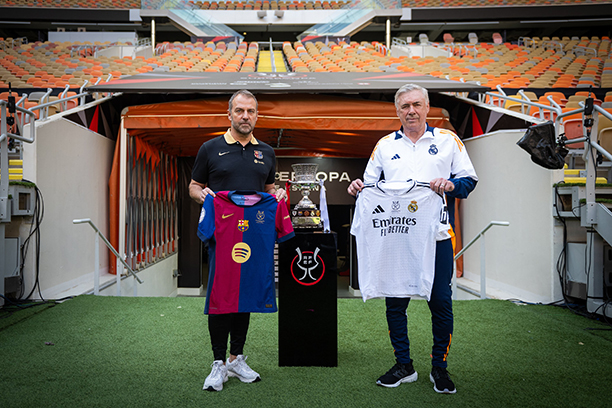 HLV Hansi Flick đã chờ đợi đồng nghiệp Carlo Ancelotti để giao lưu trước El Clasico, nhưng nhà cầm quân người Italia đã không đến sân Olímpico de Sevilla. |