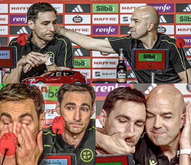 ![]() Real hủy cuộc gặp giữa Ancelotti và Flick Hôm qua, Barcelona và Real Madrid đã có mặt tại Sevilla để chuẩn bị cho trận chung kết cúp Nhà Vua, diễn ra lúc 03h00 rạng sáng mai (27/4) trên sân Olímpico de Sevilla. Trước El Clasico thứ ba trong mùa giải này (Barca đã thắng Real 4-0 ở trận lượt đi La Liga 2024-25 và 5-2 ở chung kết Siêu cúp Tây Ban Nha 2025), Los Blancos đã có hàng loạt động thái bất thường. Cụ thể, hôm qua, Real Madrid đã hủy buổi tập làm quen sân. Chưa dừng lại ở đó, Chủ tịch Perez cùng các lãnh đạo của CLB đã tẩy chay bữa tối truyền thống do LĐBĐ Tây Ban Nha (RFEF) tổ chức, hủy cuộc họp báo trước trận, khiến giới truyền thông vô cùng hụt hẫng và thất vọng. Ngoài ra, Real còn bỏ cuộc gặp truyền thống giữa hai HLV trước trận chung kết. Không chỉ báo giới, HLV Hansi Flick cũng tỏ ra bất ngờ và thất vọng trước những động thái bất thường của đối thủ. Như thường lệ tại Tây Ban Nha, trước mỗi trận tranh cúp quốc nội, hai HLV sẽ cùng giao lưu, chụp ảnh với chiếc cúp và áo đấu. Hôm qua, HLV Hansi Flick đã tham dự buổi họp báo trước El Clasico và đến sân Olímpico de Sevilla để chờ gặp, giao lưu và chụp ảnh cùng Carlo Ancelotti. Tuy nhiên, chiến lược gia người Italia đã không xuất hiện do Real Madrid đã hủy sự kiện truyền thống này. ![]() Real bỏ họp báo Lý do Real Madrid tẩy chay bữa tối, hủy tập làm quen sân và từ chối tham gia cuộc gặp giữa hai HLV được cho là vì xung đột với RFEF – cơ quan quyền lực cao nhất của bóng đá Tây Ban Nha. Theo truyền thông xứ bò tót, trước trận chung kết cúp Nhà Vua, Real Madrid đã yêu cầu thay đổi tổ trọng tài điều khiển trận đấu, đặc biệt là trọng tài VAR Pablo González Fuertes, do bất bình với phát ngôn của ông này. Cụ thể, trong một buổi họp báo trước El Clasico, ông Pablo González Fuertes phát biểu: "Chúng tôi đang đoàn kết hơn bao giờ hết và sẽ thực hiện những biện pháp trừng phạt nghiêm ngặt hơn. Trong vài ngày tới, các bạn sẽ chứng kiến chúng tôi tạo nên lịch sử." Tuyên bố trên được cho là nhằm đáp trả Real Madrid TV – kênh truyền thông chính thức của CLB Real – sau khi kênh này đăng tải video công kích trọng tài chính Ricardo de Burgos Bengoetxea. Trong video, Real Madrid TV đã liệt kê hàng loạt sai sót của ông Ricardo trong quá khứ, cho rằng những quyết định đó gây bất lợi cho Real. Thậm chí, họ còn nhấn mạnh rằng ông chưa từng được phân công điều khiển các trận đấu lớn và cũng chưa bao giờ được UEFA hay FIFA giao nhiệm vụ bắt chính. Những cáo buộc này đã khiến trọng tài Ricardo de Burgos Bengoetxea và gia đình ông phải chịu áp lực lớn. Đặc biệt, con trai ông bị bạn bè ở trường chế giễu là "con của một kẻ ăn cắp". Trong cuộc họp báo hôm qua, ông Ricardo de Burgos Bengoetxea đã rơi nước mắt khi đề cập đến những áp lực mà ông và gia đình phải chịu trong những ngày qua. ![]() Trọng tài Pablo González Fuertes động viên đồng nghiệp Ricardo de Burgos Bengoetxea trong cuộc họp báo trước El Clasico