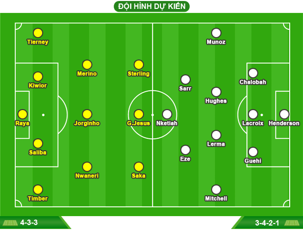 - ARSENAL: Vắng Ben White, Takehiro Tomiyasu (chấn thương) và Neto; Khả năng ra sân của Riccardo Calafiori, Olensakdr Zinchenko và Declan Rice còn bỏ ngỏ.