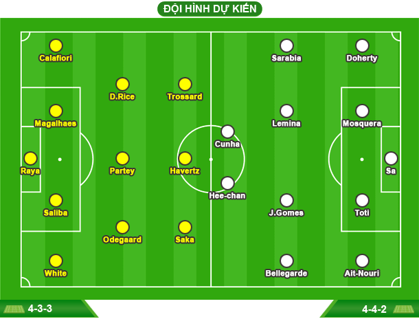 - ARSENAL: Vắng Takehiro Tomiyasu (chấn thương); Khả năng ra sân của Jurrien Timber còn bỏ ngỏ.