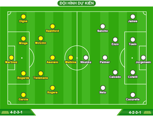 Trong tình thế bất lợi này, sẽ không bất ngờ nếu Aston Villa chơi tấn công để tìm kiếm bàn thắng sớm trước Chelsea. Với bộ tứ Rogers, Asensio, Rashford và Watkins, Aston Villa đủ sức làm khó hàng thủ vốn thiếu chắc chắn của The Blues. Nếu tiếp tục chơi tấn công như ở trận gặp Liverpool, đoàn quân của Emery khả năng cao sẽ có được điều mình cần.