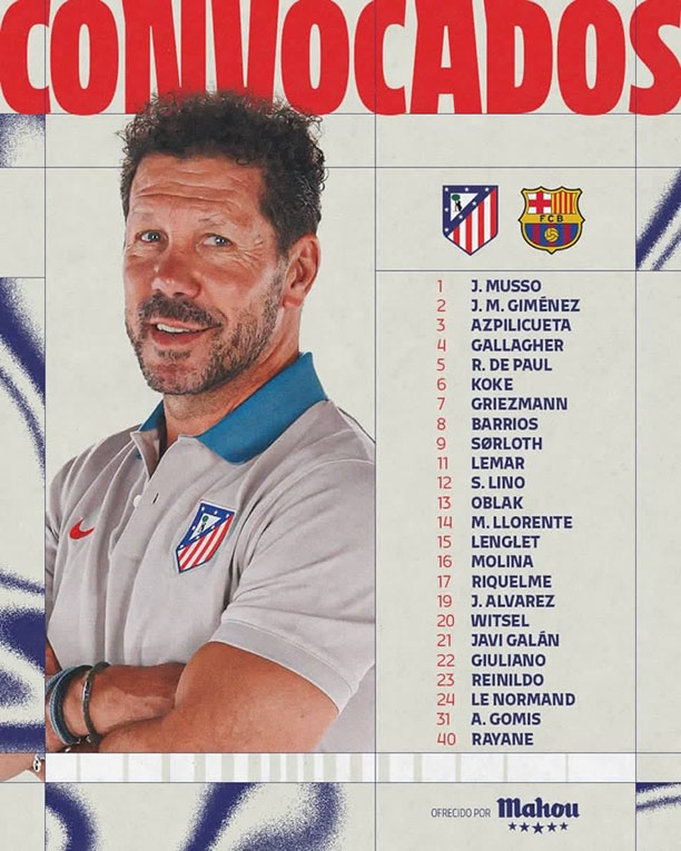 Cả Atletico Madrid và Barcelona đều đã công bố danh sách đăng ký cho trận lượt về vòng bán kết cúp Nhà Vua giữa hai đội. |