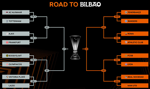 ![]() Kết thúc vòng xếp hạng Europa League, 8 đội đầu bảng đã đi thẳng vào vòng 1/8, gồm Lazio, Athletic Bilbao, Man Utd, Tottenham, Eintracht Frankfurt, Lyon, Olympiacos và Rangers. Các đội xếp thứ 9 đến 24 chia cặp đá play-off để tìm chủ nhân 8 suất còn lại của vòng 1/8. Sau loạt trận lượt về play-off vào rạng sáng nay, UEFA đã xác định 8 đội còn lại ghi tên vào vòng 1/8 là Viktoria Plzen, Bodo/Glimt, Ajax Amsterdam, AZ Alkmaar, Real Sociedad, Steaua Bucuresti, Fenerbahce và AS Roma. Cái tên bị loại bất ngờ và đáng tiếc nhất ở vòng play-off là Galatasaray. Sở hữu nhiều ngôi sao như Osimhen, Mertens, Icardi, Yilmaz hay Torreira, nhưng nhà ĐKVĐ Thổ Nhĩ Kỳ đã thua đội chiếu dưới AZ Alkmaar với tỉ số chung cuộc 3-5. Sau khi xác định đủ 16 đội vào vòng 1/8 Europa League, UEFA đã tiến hành bốc thăm chia cặp vào lúc 19h00 tối nay 21/2 tại Nyon (Thụy Sỹ). Với riêng bóng đá Anh, họ thi đấu khá thành công ở cúp châu Âu mùa này. Ngoài M.U và Tottenham lọt vòng 1/8 Europa League, 3 đội đã vào vòng 1/8 Champions League là Arsenal, Liverpool và Aston Villa, chưa kể Chelsea cũng sớm ghi tên vào 1/8 Conference League. Huyền thoại Bilbao, Aritz Aduriz vinh dự được mời bốc thăm vòng 1/8 Europa League. Lá thăm không may mắn đã đến với M.U khi họ phải đụng độ Real Sociedad, đội bóng được đánh giá rất khó chơi của La Liga. Đây cũng là thử thách lớn với Ruben Amorim trong bối cảnh M.U vẫn đang rối ren với rất nhiều vấn đề. Đại diện còn lại của Anh, Tottenham cũng gặp đối thủ khó là AZ Alkmaar. Đội bóng của Hà Lan vừa loại Galatasaray ở vòng play-off theo cách đầy thuyết phục. Trong khi đó, Fenerbahce của Mourinho lại nhận được lá thăm may mắn khi chỉ phải gặp đội bóng của Scotland, Rangers. Với khả năng đấu cúp của Mourinho, đại diện của Thổ Nhĩ Kỳ không khó để tiến vào tứ kết. KẾT QUẢ BỐC THĂM VÒNG 1/8 EUROPA LEAGUE ![]() PHÂN NHÁNH VÒNG KNOCK-OUT EUROPA LEAGUE ![]() |