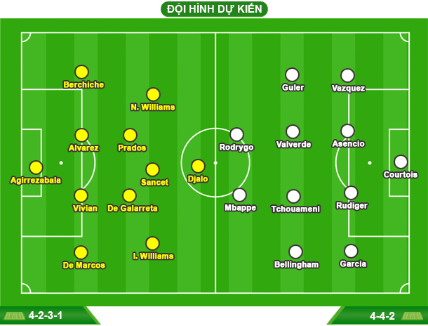 LỰC LƯỢNG - BILBAO: Herrera chấn thương - REAL MADRID: Militao, Carvajal, Alaba, Camavinga và Vinicius chấn thương. PHONG ĐỘ VÀ ĐỐI ĐẦU - Bilbao thắng 6, thua 1, hòa 3 ở 10 trận gần nhất - Real thắng 6, thua 4 ở 10 trận vừa qua - Bilbao không thắng ở 29/32 trận gần nhất gặp Real trên mọi đấu trường ![]() Bilbao là đội bóng La Liga thua ít nhất trên mọi mặt trận hơn 2 tháng qua (1 trận) Cùng Mallorca và Barca, Bilbao và Real sẽ dự siêu cúp TBN tại Saudi Arabia từ ngày 9 đến 11/1/2025, thời điểm vòng 19 La Liga diễn ra. Vì lẽ đó, cả bốn đội sẽ đá sớm vòng 19 giữa tuần này. Trước cuộc tiếp đón Real, Bilbao thể hiện phong độ vô cùng ấn tượng. Bằng chứng là đội bóng xứ Basque chỉ thua 1 ở 16 trận gần nhất trên mọi đấu trường. Nhờ phong độ cực tốt Bilbao đang xếp thứ hai trên BXH Europa League, có cùng 13 điểm như đội đầu bảng Lazio nhưng họ xếp sau vì kém chỉ số phụ. Tại La Liga, thầy trò Valverde xếp thứ tư với 7 điểm kém đội thứ hai Real (26 so với 33). Không chỉ công hay (ghi 22 bàn/15 trận, nhiều thứ sáu giải cùng Girona, sau Barca - 48, Real - 33, Villarreal - 27, Atletico - 26 và Celta Vigo - 23), Bilbao còn thủ chắc (thủng lưới 14 lần, ít thứ tư giải, sau Atletico - 8, Real và Sociedad - cùng thủng lưới 11 lần, và Getafe - 13 lần). Đây là những yếu tố giúp Bilbao trở thành đội bóng Tây Ban Nha khó bị đánh bại nhất hơn 2 tháng qua. Xét về phong độ, Real kém xa Bilbao vào thời điểm hiện tại. Bằng chứng là trong khi Bilbao thua 1/10 trận gần nhất thì Los Blancos thua 4/10 trận vừa qua. Một trong những nguyên nhân khiến Real thường xuyên thua là do họ chịu tổn thất lực lượng nghiêm trọng: mất Militao, Carvajal, Camavinga, đặc biệt là một trong những cầu thủ xuất sắc nhất thế giới vào thời điểm này, Vinicius. Mất Vinicius đã ảnh hưởng lớn đến sức mạnh và sự tự tin của Los Blancos. Hậu quả, họ thua Liverpool ở lượt thứ năm Champions League. ![]() Mbappe giành giải cầu thủ xuất sắc nhất trận thắng Getafe Sau trận thua tâm phục khẩu phục Liverpool, Real trở lại bằng trận thắng Getafe tại vòng 15 La Liga. Dù thắng trở lại nhưng khả năng phục hồi thực sự của Real vẫn bị đặt trước dấu hỏi, bởi lẽ Getafe là đối thủ không xứng tầm với các nhà ĐKVĐ Champions League và La Liga. Trái với đội bóng đang chật vật trụ hạng Getafe, Bilbao mới là bài test xứng tầm với Real. Như đã nói ở trên, Bilbao thể hiện phong độ cực kì ấn tượng khi bước vào trận chiến với Real. Thế nhưng trong quá khứ, đội bóng xứ Basque này luôn như cua gặp ếch mỗi khi chạm trán Real tại La Liga, đặc biệt trên sân nhà San Mames. Theo thống kê, kể từ trận thắng 1-0 vào tháng 3/2015, Bilbao toàn hòa (2) và thua (7) ở 9 lần tiếp đón Real gần nhất tại La Liga. Riêng 5 trận tiếp đón Real vừa qua, đội bóng xứ Basque thua cả 5 và chỉ ghi được 1 bàn. Tính trên mọi đấu trường, Bilbao chỉ thắng 3/32 trận gần nhất trước Real. ![]() Rodrygo ghi 3 bàn ở 2 trận gặp Bilbao mùa trước Tuy nhiên, nhờ phong độ vượt trội, Bilbao đang đứng trước cơ hội lớn thay đổi lịch sử đối đầu cực tệ với Real. Dù vậy, mọi chuyện sẽ không dễ với thầy trò Valverde khi họ đụng độ đối thủ kị giơ, vua thi đấu xa nhà tại La Liga (Real không thua sân khách 21 trận gần nhất). Càng khó cho Bilbao khi họ tiếp đón Real vào thời điểm Bellingham đã lấy lại phong độ tốt nhất (ghi 3 bàn, có 2 kiến tạo ở 3 trận gần nhất tại La Liga), và Mbappe đã giải tỏa áp lực sau khi ghi bàn thắng ở trận thắng Getafe. Dù khó thắng nhưng với phong độ ấn tượng hơn hẳn Real vào lúc này, Bilbao có hi vọng lần đầu giành điểm tại giải VĐQG TBN trên sân nhà trước Los Blancos sau 5 trận thua liên tiếp. DỰ ĐOÁN: Hòa 2-2 ![]() BẢNG XẾP HẠNG