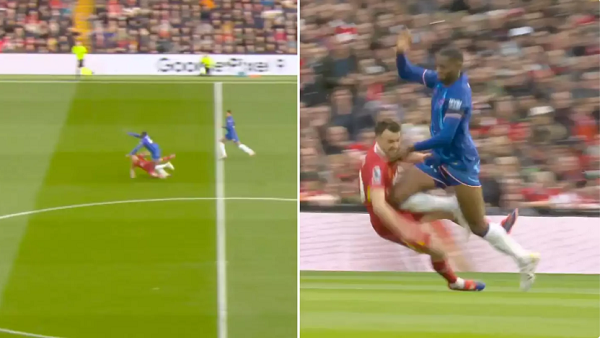 Tosin Adarabioyo đã may mắn không bị lĩnh thẻ đỏ sau pha phạm lỗi với Diogo Jota ở màn so tài giữa Liverpool và Chelsea. |