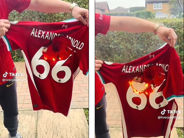 CĐV Liverpool đốt áo đấu của Alexander-Arnold |