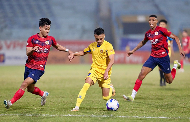 Tận dụng sai lầm của hàng thủ CA Hà Nội, Quảng Nam đã vùng lên mạnh mẽ