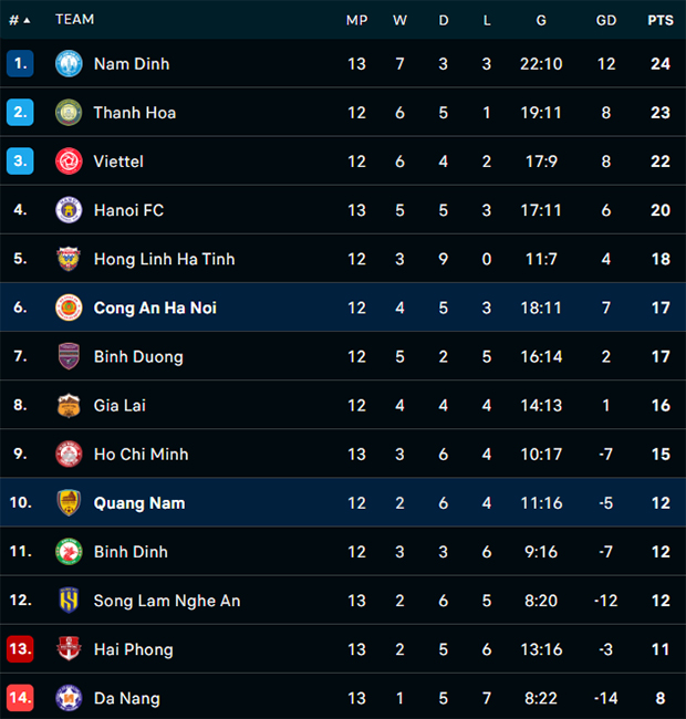 Tối 15/2, CA Hà Nội đã bước vào trận đấu với Quảng Nam thuộc vòng 13 V-League. Trước trận đấu này, thầy trò Mano Polking đứng thứ 7 trên BXH với 16 điểm, kém 8 điểm so với đội đầu bảng Nam Định. Trong khi đó, Quảng Nam mới chỉ giành 11 điểm, đang đứng áp chót BXH.