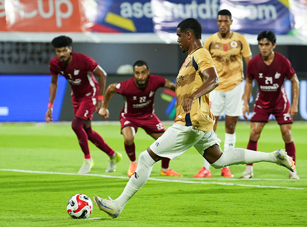 ![]() Tạo ra nhiều cơ hội nhưng CA Hà Nội đã để thua PSM Makassar ở lượt đi bán kết ASEAN Club Championship CA Hà Nội là đại diện duy nhất của bóng đá Việt Nam giành vé vào bán kết ASEAN Club Championship 2024-25. Thậm chí, thầy trò Mano Polking còn kết thúc vòng bảng với chiến tích toàn thắng. Tối 2/4, đội bóng ngành công an đã bước vào trận lượt đi bán kết với PSM Makassar, đội bóng đi tiếp với ngôi nhì bảng A. Với quyết tâm giành chiến thắng ngay trên đất Indonesia, CA Hà Nội đã tung ra sân đội hình gần như tốt nhất với đầy đủ các trụ cột như Nguyễn Filip, Quang Vinh, Thành Long, Văn Thanh, Việt Anh, Văn Đô, Đình Trọng, Quang Hải, Vitao, Hugo Gomes hay Alan Grafite. Ngay sau tiếng còi khai cuộc, đại diện của Việt Nam đã chủ động chơi ăn miếng trả miếng với PSM Makassar. Cơ hội đáng kể đầu tiên của CA Hà Nội được tạo ra ở phút thứ 8 với cú đi bóng và dứt điểm của Lê Văn Đô từ cánh trái. Thủ thành Arya đã phải vất vả cứu thua cho đội bóng của Indonesia. Phút 12, với pha xử lí khéo léo trong vòng cấm, Quang Hải đã buộc hậu vệ của PSM Makassar phạm lỗi. Trọng tài lập tức cho CA Hà Nội được hưởng phạt đền. Điều đáng tiếc là trên chấm 11m, tiền đạo Alan Grafite không thể đánh bại thủ thành Arya. Bóng sau đó đã đập cột dọc bật ra. ![]() Alan Grafite bỏ lỡ cơ hội ghi bàn ngon ăn trên chấm phạt đền Trận đấu sau đó diễn ra khá nóng với nhiều tình huống va chạm. Lối chơi quyết liệt của các cầu thủ PSM Makassar đã gây không ít khó khăn cho Quang Hải và các đồng đội. Dù vậy, trong 45 phút đầu tiên, đội bóng của Việt Nam tạo ra nhiều cơ hội rõ ràng hơn. Phút 27, Hugo Gomes bật cao đánh đầu nguy hiểm nhưng bóng đi chệch khung thành của PSM Makassar. 6 phút sau, Văn Đô lại bỏ lỡ cơ hội với cú dứt điểm quá vội, chưa đủ khó để đánh bại thủ thành Arya. Cuối hiệp 1, tới lượt Quang Hải đe dọa khung thành của PSM Makassar với cú vô-lê đẹp mắt nhưng thủ thành Arya đã cứu thua cho đội bóng của Indonesia. Trước khi kết thúc hiệp 1, CA Hà Nội suýt để thủng lưới từ pha phản công của PSM Makassar. Thủ thành Nguyễn Filip đã trổ tài cứu thua trong thế đối mặt tiền đạo của đội chủ nhà. Bước sang hiệp 2, trận đấu vẫn diễn ra với thế trận cân bằng. PSM Makassar chủ động đẩy cao đội hình tìm bàn mở tỉ số nhưng CA Hà Nội cũng sẵn sàng dâng cao khi có cơ hội. Phút 58, đội bóng của Việt Nam suýt để lọt lưới ở tình huống căng ngang của Victor Luiz. Bóng đã đi cắt ngang khung thành của Nguyễn Filip mà không có điểm chạm nào. Ở nửa sau hiệp 2, trận đấu diễn ra với tốc độ cao hơn. Và nhờ tình huống đá phạt góc ở phút 80, PSM Makassar đã ghi bàn mở tỉ số. Trung vệ Yuran Fernandes là người đã bật cao đánh đầu hiểm hóc, hạ gục thủ thành Nguyễn Filip. ![]() Trung vệ Yuran Fernandes ghi bàn thắng duy nhất của trận đấu ở phút 80 Sau bàn thua, CA Hà Nội buộc phải vùng lên. Trong thế trận đó, PSM Makassar suýt nâng tỉ số lên 2-0 ở phút 86. Abdul Rahman đã được đặt vào thế đối mặt Nguyễn Filip nhưng lại dứt điểm đưa bóng đi chệch cột dọc. Trong phần còn lại của trận đấu, CA Hà Nội nỗ lực tấn công nhưng không thể ghi bàn nên đành chấp nhận thất bại với tỉ số 0-1. Đây là thất bại rất đáng tiếc của thầy trò Mano Polking. Dù vậy, CA Hà Nội vẫn còn trận lượt về trên sân nhà để hi vọng lật ngược thế cờ. Theo lịch, 2 đội sẽ tái đấu trên sân Hàng Đẫy vào ngày 30/4 tới. Ở trận lượt đi bán kết còn lại của ASEAN Cup Championship, Buriram United với ưu thế sân nhà đã vượt qua BG Pathum United với tỉ số 3-1. ĐỘI HÌNH THI ĐẤU PSM MAKASSAR: Arya (Syah 46’), Yuran Fernandes, Victor Luiz, Aloisio Neto, Lasinari, Tanjung, Raehan, Sakai, Hajeta, Eka Pratama (Ramah 59’), Dethan (R.Pratama 68’). CA HÀ NỘI: Nguyễn Filip, Văn Thanh, Pendant Quang Vinh, Hugo Gomes, Việt Anh, Đình Trọng (Thaleon 70’), Văn Đô, Quang Hải, Thành Long (Văn Đức 68’), Vitao, Alan Grafite. |
