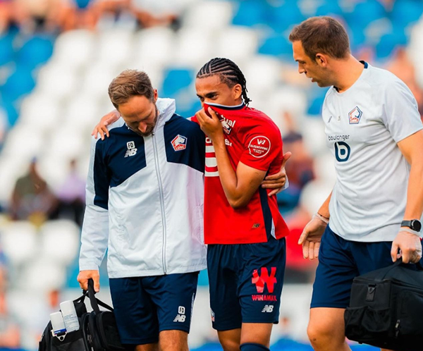 Tiền vệ Ethan Mbappé dính chấn thương mắt cá nghiêm trọng ở trận giao hữu giữa Lille và Genk. |