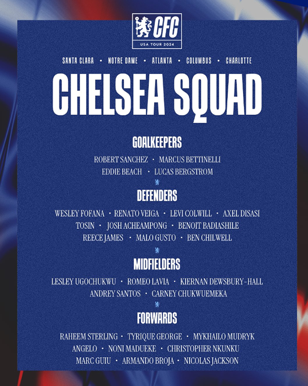 Trung vệ Trevoh Chalobah không có tên trong tour du đấu Mỹ hè này của Chelsea vì bị loại khỏi kế hoạch. |