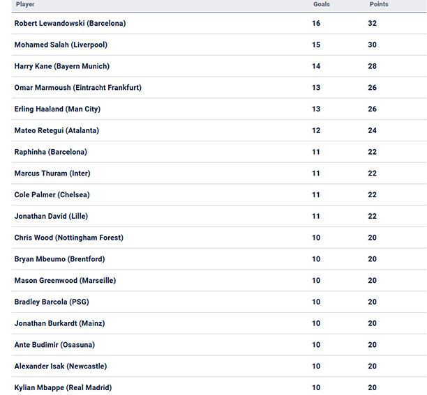 Nhiều khả năng Lewandowski sẽ mất vị trí số 1 trong cuộc đua Chiếc giày vàng châu Âu 2024-25 vào tay Mo Salah trước khi bước sang năm mới. |