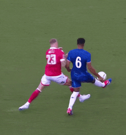 Colwill túm áo đối thủ