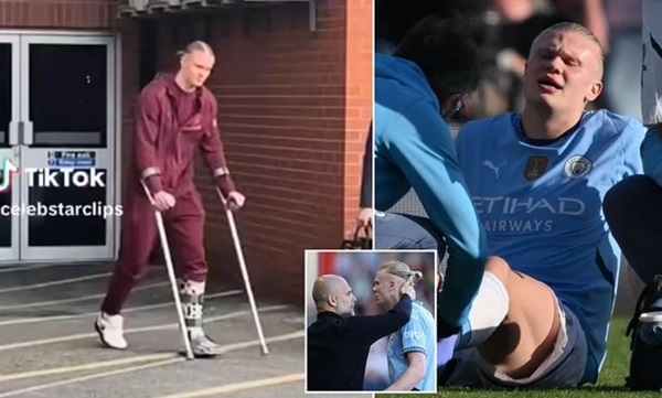 Dính chấn thương, Haaland chống nạng rời sân |