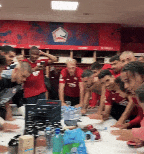 Tiền vệ Ethan Mbappe ăn mừng tưng bừng trên sân và trong phòng thay đồ sau trận Lille đánh bại Real Madrid ở Champions League. |