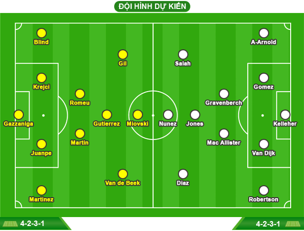- LIVERPOOL: Vắng Alisson Becker, Diogo Jota, Conor Bradley và Ibrahima Konate (chấn thương).