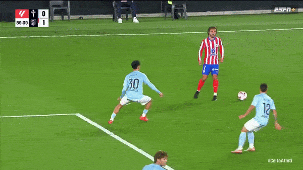 Griezmann thực hiện đường chuyền tinh tế cho Julian Alvarez ghi bàn thắng duy nhất giúp Atletico Madrid đánh bại Celta Vigo tại vòng 7 La Liga. |