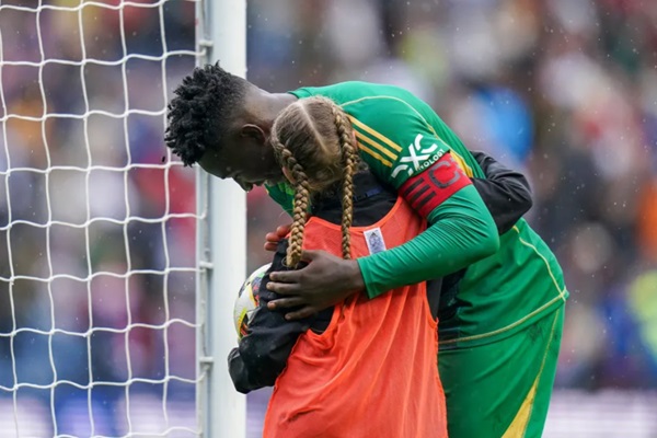 Onana đã tặng trái bóng và đôi găng tay cho cô bé nhặt bóng