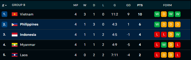 Tận dụng tốt lợi thế hơn người trong cả hiệp 2, Philippines đã đánh bại Indonesia nhờ pha lập công duy nhất của tiền đạo Martin Kristensen. Chiến thắng này vừa đủ để thầy trò ông Capellas Herms đoạt vé vào bán kết ASEAN Cup 2024. |