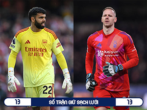 Cuộc đua giải Găng vàng Premier League chỉ còn là cuộc chiến giữa David Raya và Matz Sels. Giải thưởng này sẽ được quyết định ở vòng hạ màn cuối tuần này. |