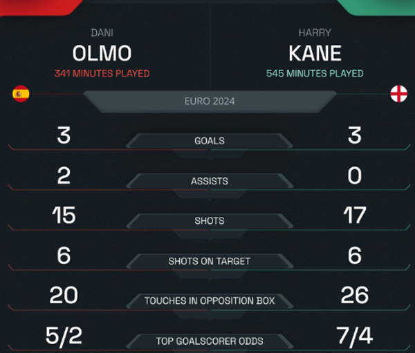 ![]() Kane sẽ vô địch và giành Chiếc giày vàng EURO 2024? Ngày hội bóng đá lớn nhất châu Âu tại Đức hè năm nay sắp đi đến hồi kết. Theo lịch, vào 02h00 ngày 15/7, Tây Ban Nha và Anh sẽ đụng độ ở trận chung kết tại Berlin. Bên cạnh đội vô địch, cuộc thư hùng giữa La Roja và Tam sư rạng sáng thứ Hai tới còn xác định chủ nhân của nhiều danh hiệu cá nhân tại EURO 2024, đặc biệt là Chiếc giày vàng. Trước trận cuối cùng EURO 2024 có 6 cầu thủ đang dẫn đầu cuộc đua Vua phá lưới là Kane (Anh), Olmo (TBN), Gakpo (Hà Lan), Mikautadze (Georgia), Musiala (Đức) và Schranz của Slovakia. Tất cả cùng ghi 3 bàn. Trong 6 cầu thủ kể trên, Gakpo, Mikautadze, Musiala và Schranz đã hết cơ hội ghi bàn. Trong khi đó, Kane và Olmo còn cơ hội lập công ở trận chung kết. Riêng Kane, nếu giành danh hiệu cá nhân này, chân sút của Bayern sẽ đi vào lịch sử với tư cách là cầu thủ thứ hai đoạt Chiếc giày vàng World Cup và EURO sau Gerd Muller. Huyền thoại bóng đá Đức từng đoạt giải Vua phá lưới World Cup 1970 (10 bàn) và EURO 1972 (4 bàn). Gerd Muller hiện là cầu thủ duy nhất thâu tóm 2 danh hiệu cá nhân này. Trước EURO 2024, Kane đã giành danh hiệu Vua phá lưới World Cup 2018 (6 bàn). Cần biết, Gerd Muller đoạt danh hiệu Vua phá lưới EURO 1972 tại giải đấu ĐT Đức vô địch chung cuộc. Đáng chú ý, Gerd Muller đã lập cú đúp ở trận chung kết (Đức thắng Liên Xô 3-0). Liệu Kane có thể tái lập kì tích này ở EURO năm nay? Thành tích ghi bàn, kiến tạo và thống kê chuyên môn của Olmo và Kane tại EURO 2024 ![]() |