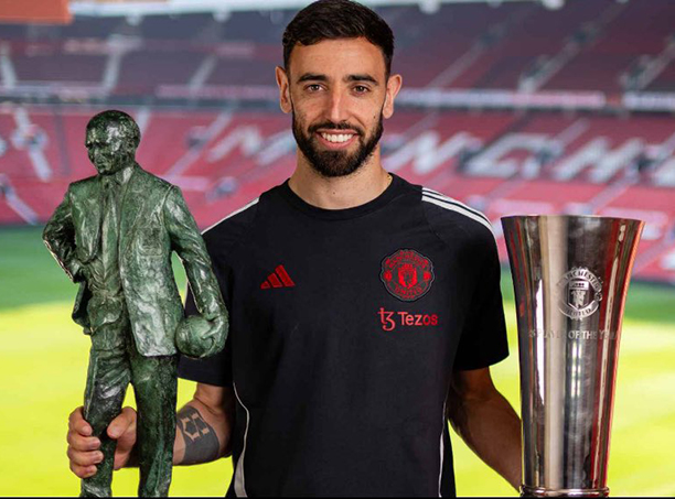 Lần thứ 4 ẵm giải Busby, Bruno sánh ngang CR7 |